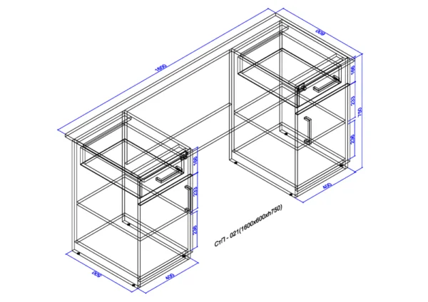 Внесите особенность в вашу рабочую зону с нашим столом письменным, дополненным двумя тумбами. Размеры 1600x600x750 мм обеспечат простор для творчества, а две тумбы поддержат порядок и организацию.